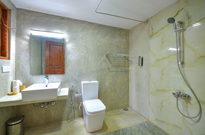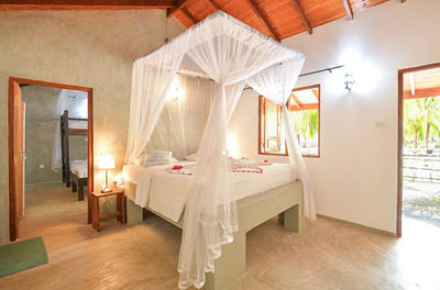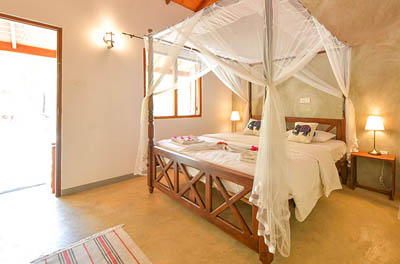 Comfortable Rooms, with Double bed, Mosquito-nets, electric fans, private bathroom and balcony.